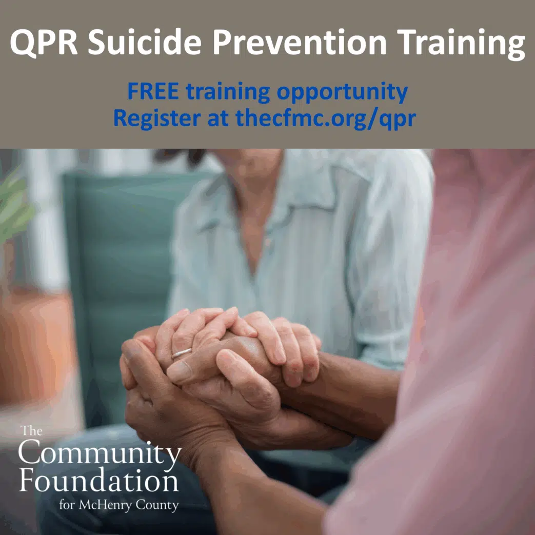 Join us at The Community Foundation on Monday, December 8, from 10:00–11:00 AM for a QPR (Question, Persuade, Refer) Suicide Prevention Training facilitated by NAMI of McHenry County.